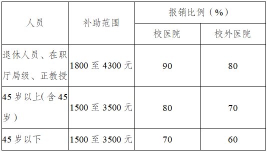 根据西校(2009)414号《西南大学教职工基本医疗保险及校内医疗补助实施细则暂行办法》第五条高额普通门诊医疗费困难补助,因特殊情况造成普通门诊费用较高的职工,每年12月可由本人提出申请,经我院医保科审核后,退休人员、在职厅局级、正教授在定点医疗机构产生的符合医保范围的药品费在1800元至4300元内,其他在职人员药品费在1500元至3500元内可按以下比例进行补助: