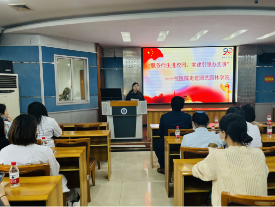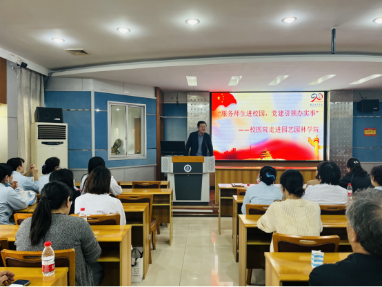活动伊始,园艺园林学院党委书记潘玉锋对西南大学医院领导及医务人员代表的到来表示热烈欢迎,并介绍了园艺园林学院的基本情况。他表示,此次医院“送健康”到学院,是对园艺园林学院工作的有力支持,希望医院能将此类活动继续开展下去,为教学科研一线的教职工和骨干人才提供更便捷、贴心的保健服务和健康咨询,助力学校人才建设和学科发展。接着,西南大学医院副院长游莉对医院概况作了全方面介绍,并对本次活动的目的与意义进行了简要说明。她表示,本次活动将医院医疗保障服务变被动为主动,为学院老师提供医疗保健、健康教育、政策咨询等多元化服务,在学院、老师、医院、医生之间形成一个沟通—交流—服务的平台,为学院的老师们带来有效的健康资讯、健康讲座和义诊服务,为教职工的健康保驾,为学院的发展护航。
