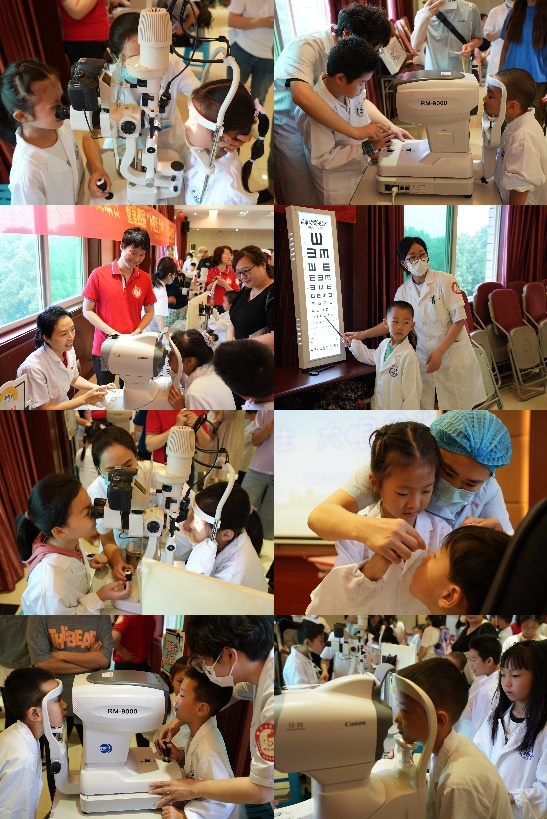 “纸上得来终觉浅,绝知此事要躬行”最深刻的学习一定是实践。“小医生”们开始分组体验检查视力、电脑验光、如何使用裂隙灯、眼压大挑战、如何滴眼药水等项目。小朋友们亲身体验每一项检查,从一开始的不清楚不理解,到自告奋勇的参与体验,侃侃而谈眼科知识,顺利成为“爱眼小卫士”。