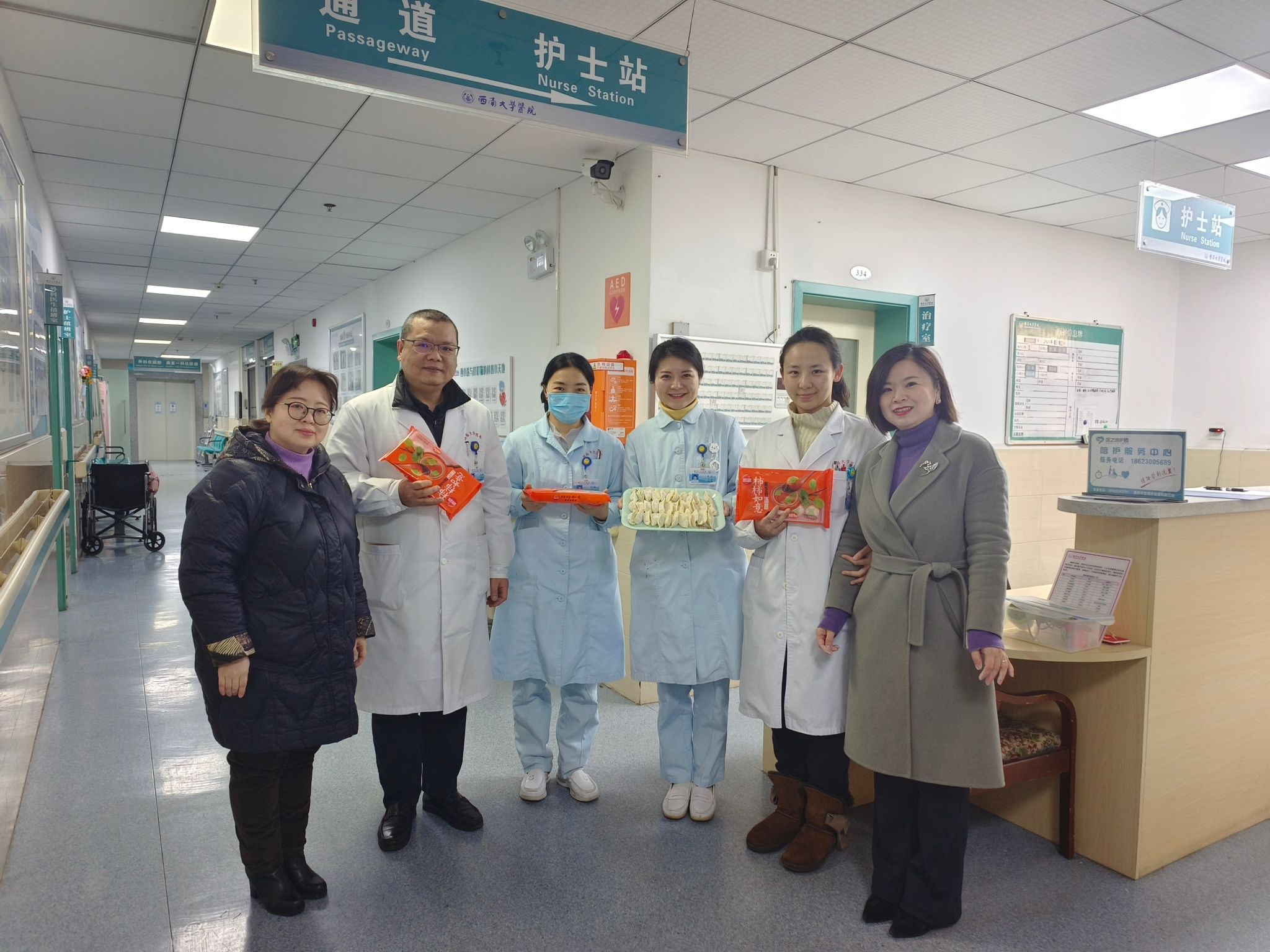 院领导们将包好的饺子和汤圆送到各科室值班人员手里,对大家在节日期间的坚守和无私奉献表示衷心的感谢,并致以节日的问候和祝福!院长游莉说,医院的发展离不开每一位职工的辛勤付出,无论是正在回家的旅途中,是在和家人团圆的时刻,还是坚守一线值班的同事,都是我们最牵挂的人!愿大家在新的一年里,更加紧密团结、共同奋斗,为全校师生和周边居民们提供更好的健康保障!