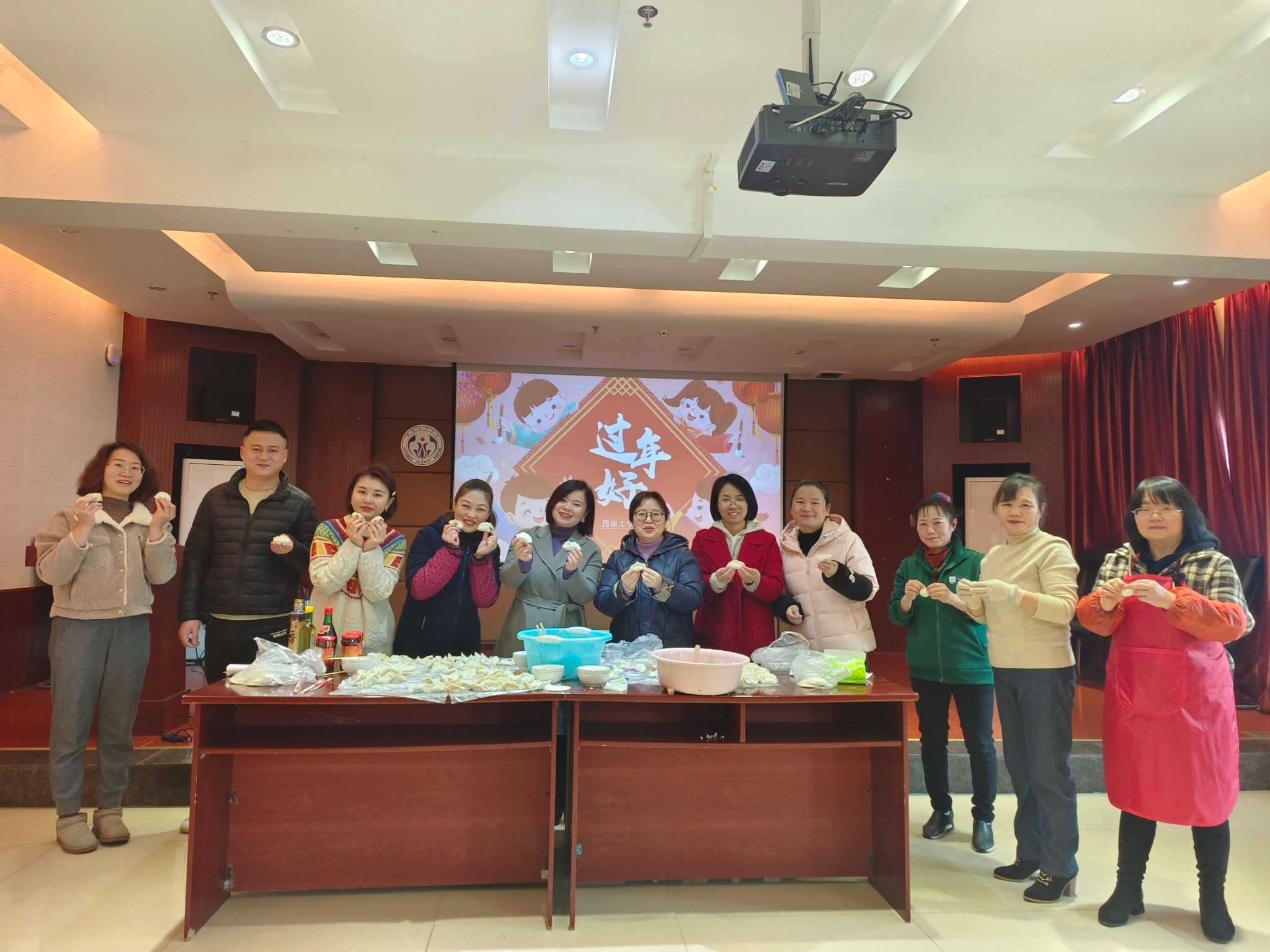 在院工会组织的除夕包饺子活动中,大家一起动手,切菜和馅,展示家常包法、艺术包法,各显神通,现场气氛热烈、其乐融融。饺子中特别加入了彩头,吃到红枣馅饺子的同事还特别发来祝福视频,收获了新年小礼物!让春节期间值班的职工既感受到了医院的关怀和温暖,又感受到了传统节日的浓厚氛围!在新的一年里,在院领导班子的带领下,全院职工将以更饱满的热情、昂扬的斗志为推动医院健康事业高质量发展而努力奋斗!