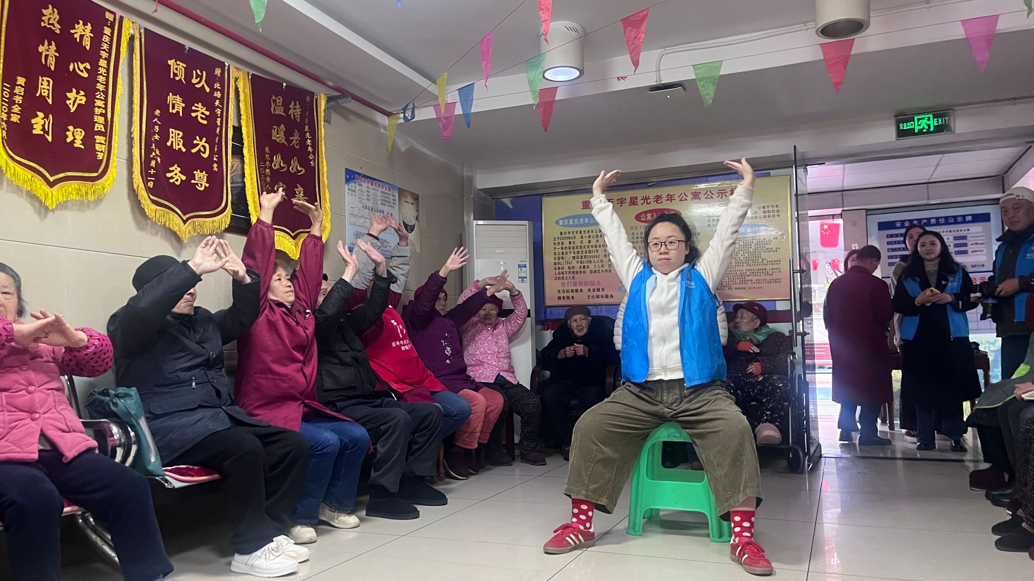 活动最后,西南大学医院的医生和科技志愿者走进了位于社区的天宇星光老年公寓,现场向老年人教授了简单易学的中医保健操“八段锦”。手部保健操、颈部放松操等动作一一呈现,医生们耐心细致地讲解每个动作的要领和保健效果,带领老年人一起练习。通过练习中医保健操,居民们不仅锻炼了身体,还增进了对中医药文化的了解和认识。