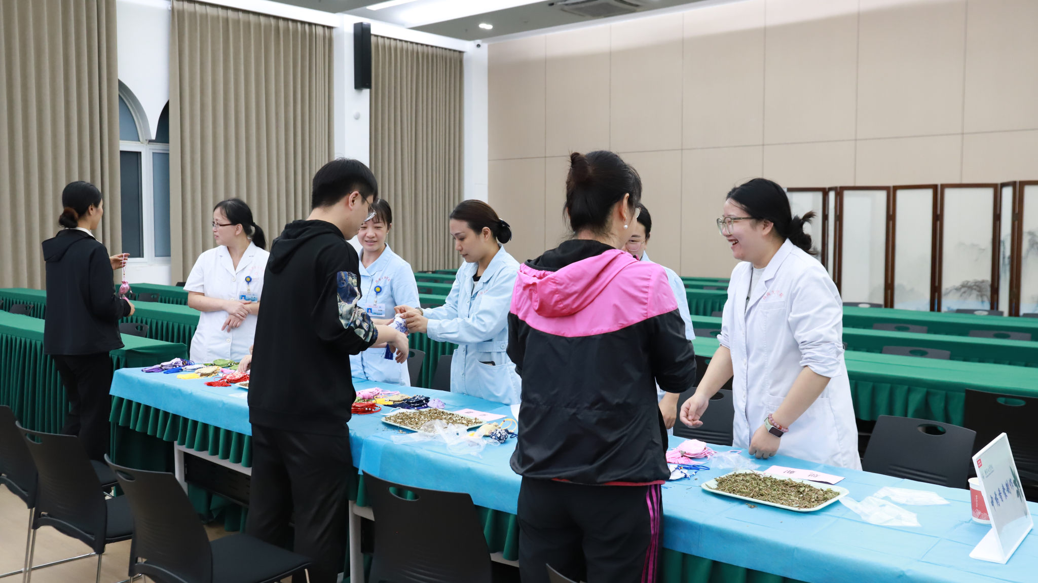 中药香囊制作区同样人气十足。中医专家团队带来由石菖蒲、薄荷、藿香组成的经典醒神方,气味是淡淡的草木清香夹杂着薄荷的清凉,非常适合长时间批改作业、备课疲劳时使用。药师通过“看、闻、摸”的方式,向教师们讲解每种药材的性味、功效及日常应用场景,让抽象的中医药知识变得直观易懂。在中药香囊制作环节,教师们踊跃参与,亲手搭配药材、缝制专属香囊,在动手实践中感受中医药的独特魅力,将健康与传统文化“带”回家。