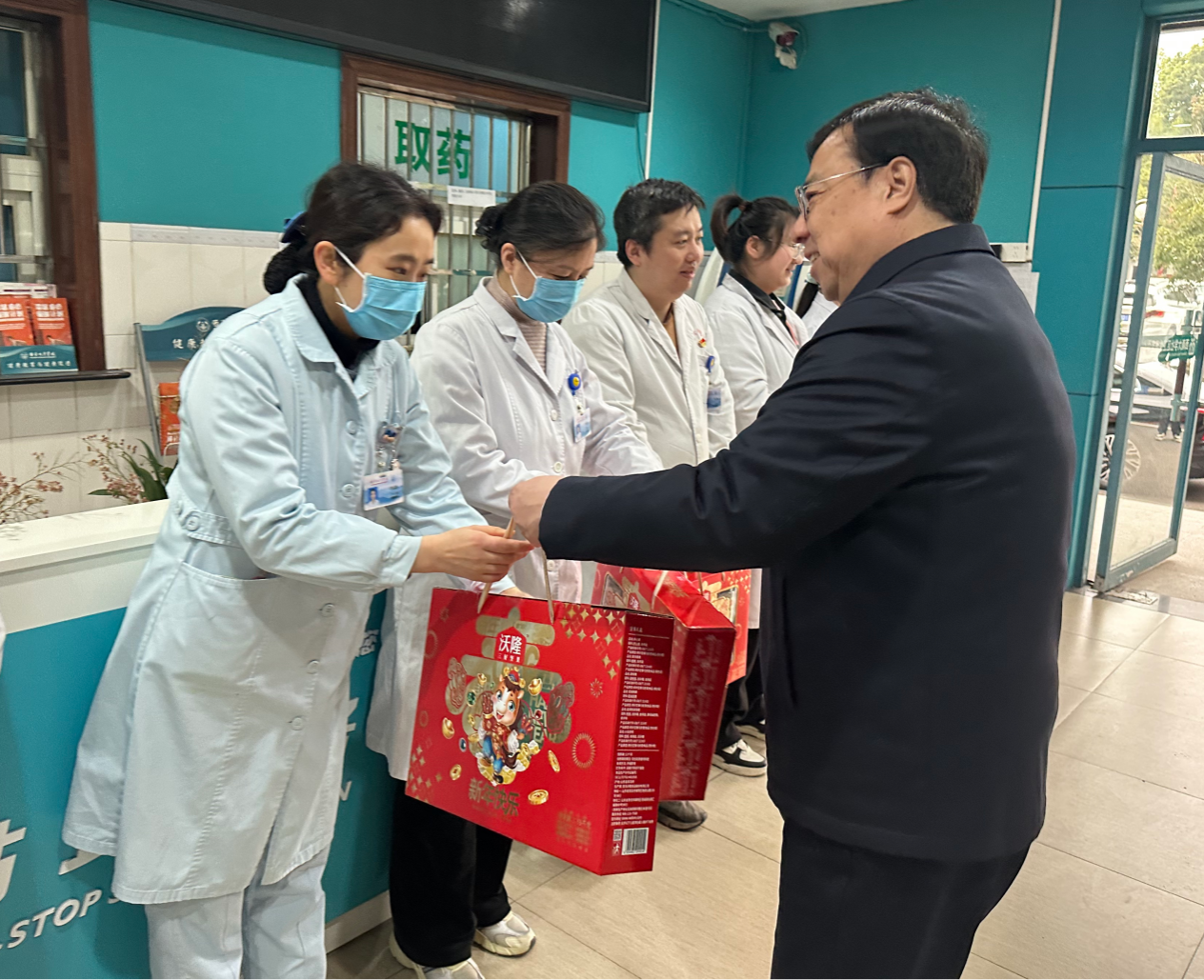 慰问中,领导们与在岗医护人员亲切交谈,详细询问假期医疗工作安排、科室日常运行及患者收治情况,对大家放弃与家人团聚、坚守岗位、履职尽责,默默守护校园师生生命健康的辛勤付出表示诚挚感谢。值班人员纷纷表示,虽未归家过年,但组织的暖心关怀让大家倍感温暖,定将不负重托,全力做好节日期间的医疗保障工作,确保校园平安祥和。
