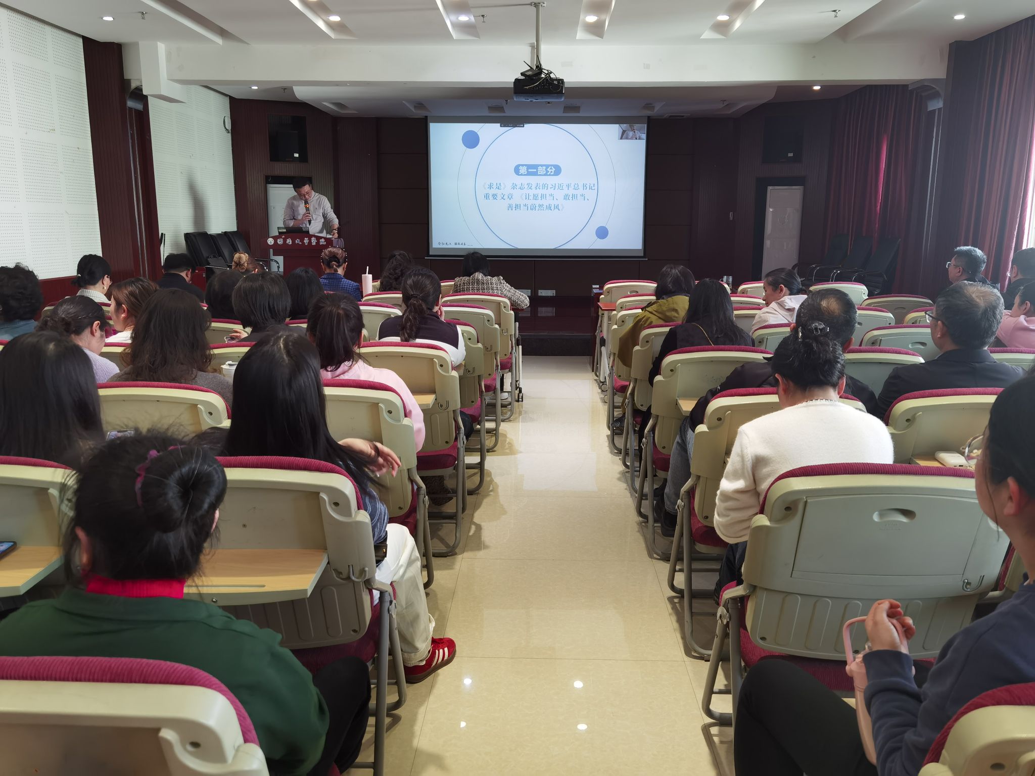 2026年4月3日,根据《中共西南大学委员会教职工政治理论学习实施意见》及学校工作安排,西南大学医院采用线上线下相结合的方式,组织全院职工开展政治理论学习。学习会由医院党委副书记、纪委书记谢彬主持。全院非值班职工在多功能厅集中参加学习,会议实况通过线上平台同步转播,确保学习教育全覆盖。