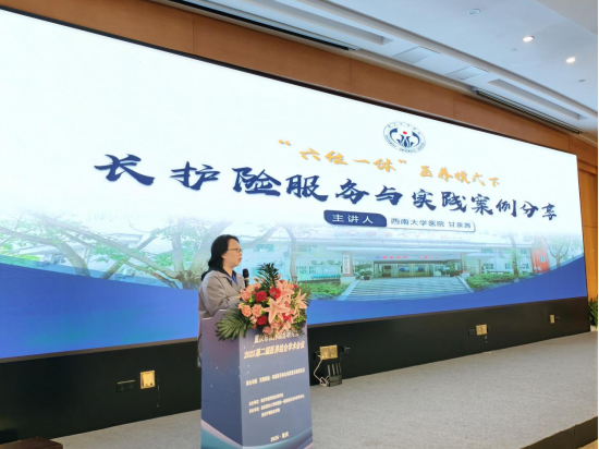 其中,西南大学医院安宁疗护科主任甘泉茜作了题为《六位一体医养模式下长护险服务与实践》的专题报告。她系统介绍了医院在长期护理保险制度背景下,探索构建的“六位一体”医养结合服务模式,涵盖医疗护理、康复促进、心理关怀、生活照料、健康管理和文化娱乐等方面,并结合实际服务案例,详细阐述了该模式在提升老年人生活质量、优化服务流程、推动资源整合等方面的实践成效,获得了与会专家的高度关注与积极评价。