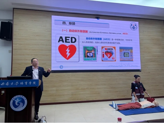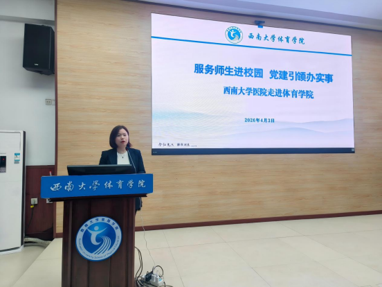 为深入践行“党建引领事业发展”理念,切实提升体育学院教职工应急救护能力,筑牢校园生命安全防线,4月3日下午,西南大学医院领导班子带领医疗团队走进体育学院,依托学校公众卫生应急技能培训基地,开展应急救护专题培训。本次活动由体育学院院长黄晓灵主持,是医院与体育学院深化党建共建、推动“党建+业务”深度融合的重要实践。